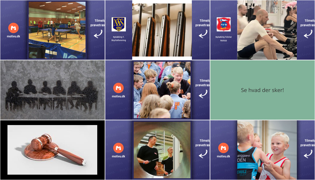 Fra mandag til fredag kan du deltage i diverse aktiviteter i Nykøbing F og omegn. Ugen starter ud med ungdomstræning i bordtennis og riffelskydning. Tirsdag kan du deltage i rotræning eller høre bibelhistorier, og onsdag er dedikeret til både FDF-møder og en generalforsamling i Ældre Sagen. Ugen afsluttes med træning for turneringsspillere i badminton og børnetræning i brydning.